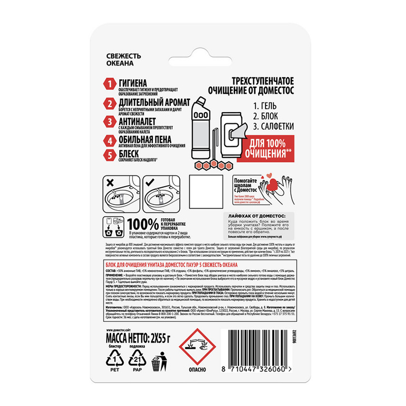 Блок для унитаза ДОМЕСТОС Свежесть океана