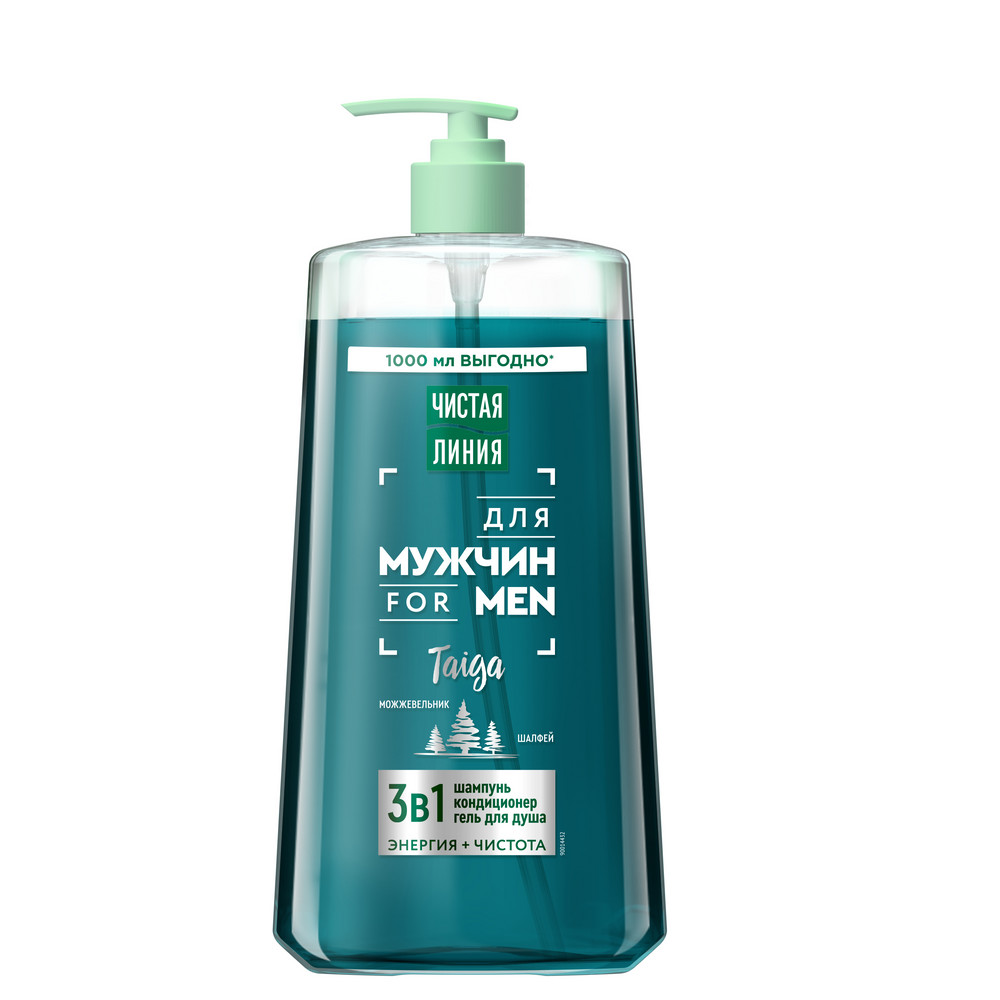 Шампунь и гель для душа мужской 3 в 1 Чистая линия Энергия + Чистота – это эффективное уходовое средство для волос, кожи головы и тела. Мужской шампунь с бальзамом FOR MEN содержит 97% компонентов натурального происхождения, не содержит силиконов.