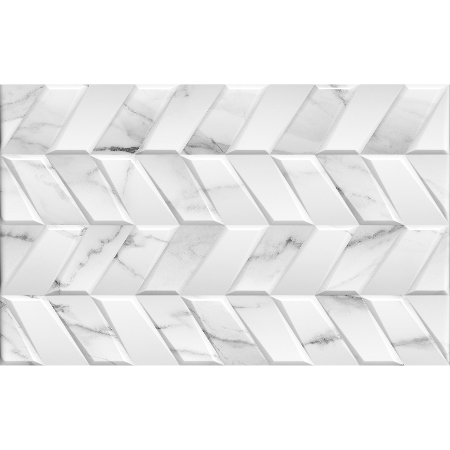 Особенностью коллекции является рельефная плита с текстурой мрамора, на поверхности которой расположился геометрический рисунок из разнонаправленных параллелепипедов. Такое решение создаёт шевронный паттерн, добавляющий поверхности динамику и выразительность. Декоративным акцентом служит имитация мозаики с микрорельефом. Мозаика состоит из множества мелких элементов, образующих гексагональный ритмичный орнамент. Эта структура добавляет пространству визуальный ритм и игру света на глянцевой поверхности.