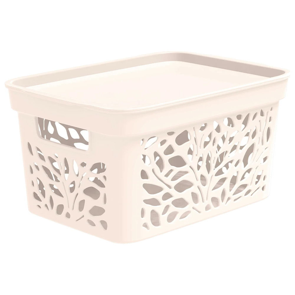 Корзина ПОЛИМЕРБЫТ Leaves с крышкой 27,4х19,7х14см молочная