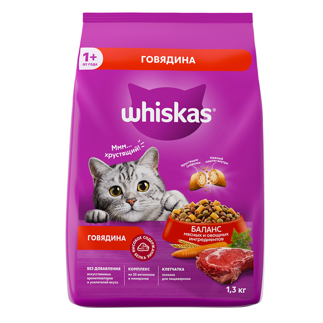 Корм для кошек WHISKAS Подушечки с говядиной 1,3кг