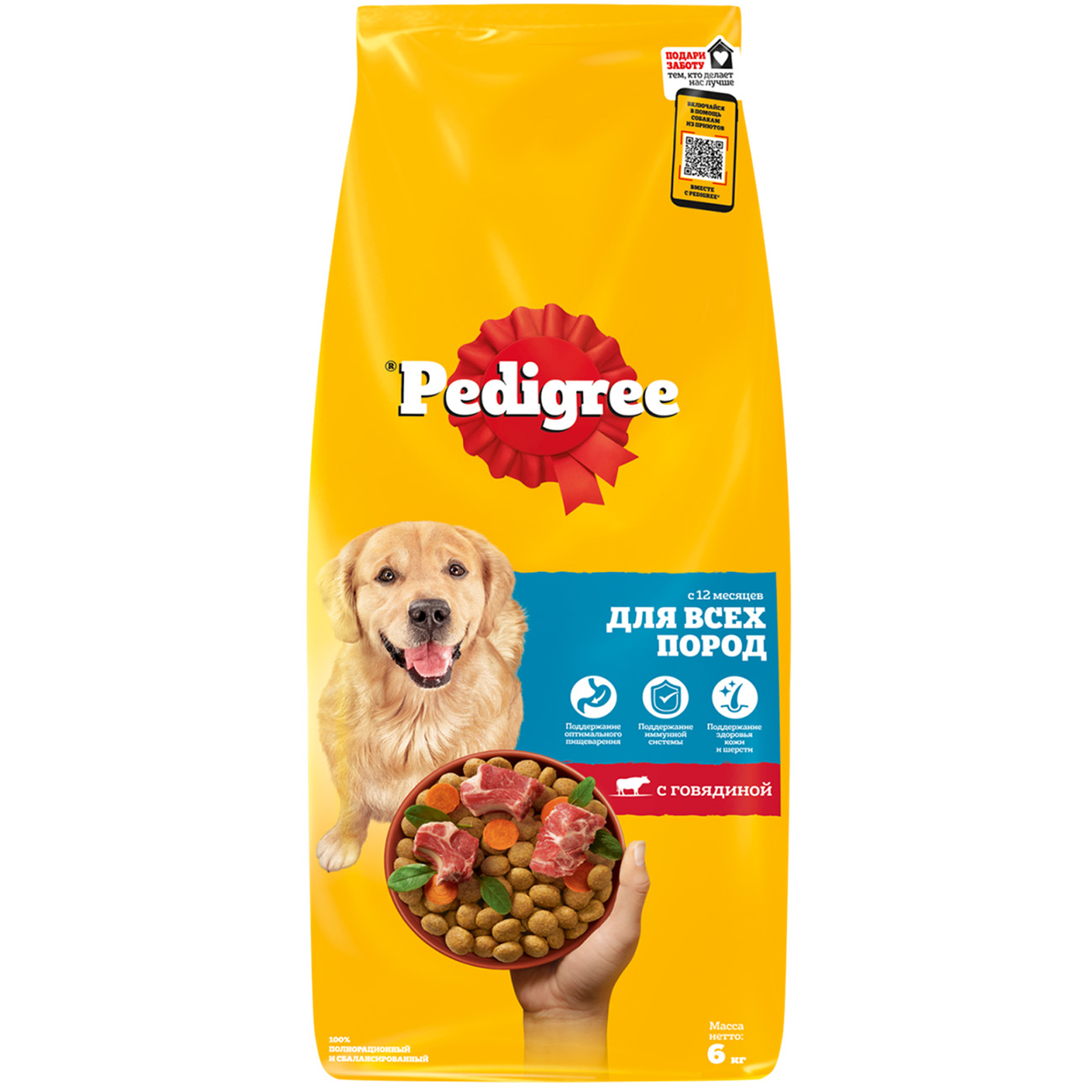 Корм для собак PEDIGREE Для взрослых собак всех пород с говядиной 6кг