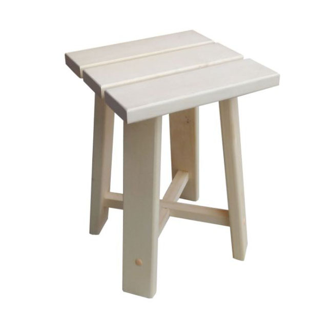 Массив дерева – износостойкий натуральный материал. При необходимости можно отшлифовать и обработать поверхность. Можно обработать маслом, воском, лаком или глазурованной краской, чтобы повысить износостойкость поверхности. Табурет из массива дерева отличается высокой устойчивостью к влаге и долговечностью, не боится перепадов температуры и влажности, что особенно важно для использования в условиях бани или сауны.