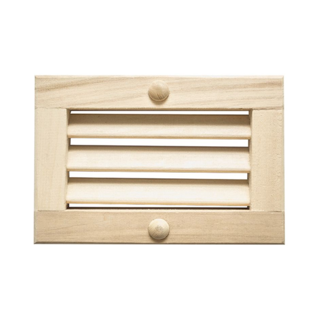 Вентиляционная решетка малая изготовлена из натурального дерева и имеет жалюзи в наружной стороны. Высокая влагостойкость и жаропрочность позволяет монтировать решетку в сауны и бани. Предназначена для притока воздуха без возможности закрытия вентиляционного отверстия. Приобретая вентиляционную решетку у нас, вы выбираете качество, стиль и долгий срок службы.