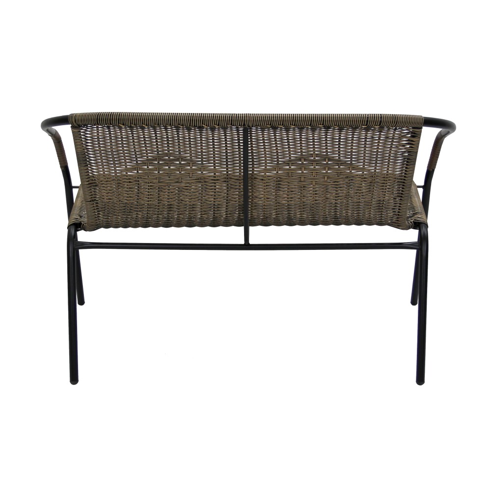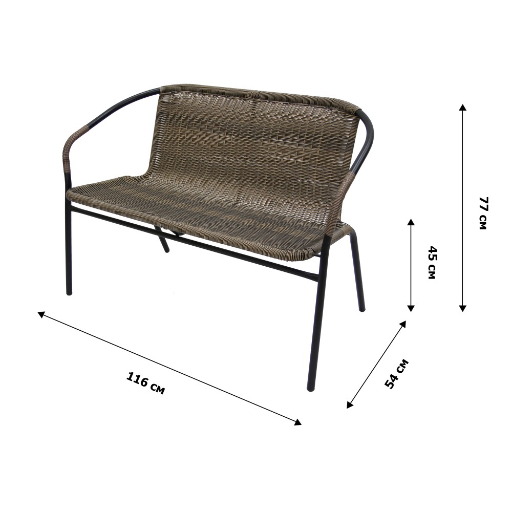 Диван Марсель представляет собой практичное и стильное решение для уличного интерьера. Его каркас выполнен из прочной стали черного цвета с трубой диаметром 25 мм, покрытой долговечной порошковой полимерной краской, защищающей от коррозии и внешних воздействий. Поверхность дивана изготовлена из качественного искусственного ротанга коричневого оттенка, отличающегося высокой стойкостью к влаге и солнечным лучам.