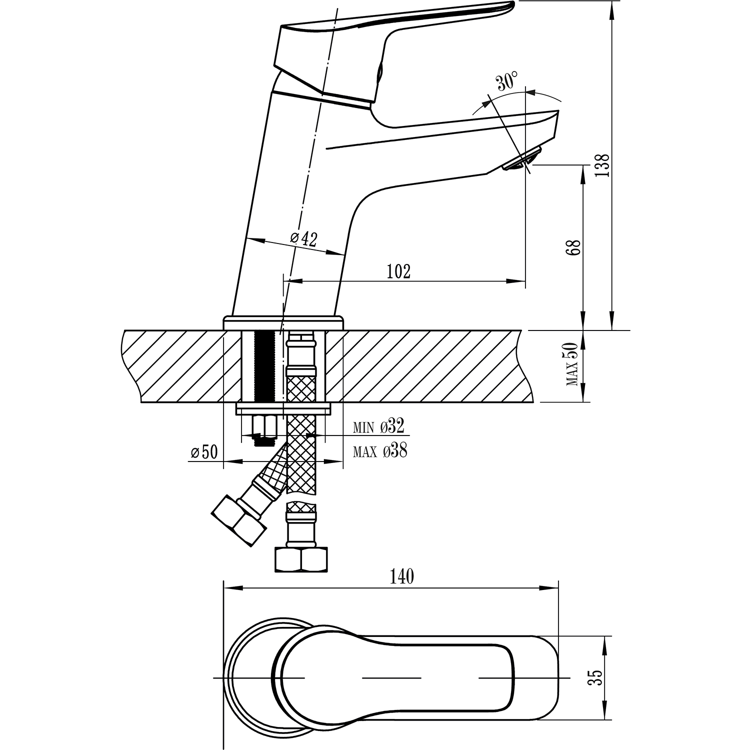Смеситель для раковины 35-04 HANT однорычажный идеально впишется в интерьер ванной комнаты. Изготовлен из латуни, утолщённые стенки корпуса, современный ячейковый аэратор. Современный дизайн. Изготовлен из латуни ЛС-59-1 с утолщёнными стенками корпуса – гарантированная повышенная прочность изделия, устойчивость к коррозии, бесшумная работа и безопасность для здоровья. Керамический картридж d-35 с гидрокомпенсатором – плавный ход ручки при открытии/закрытии и настройки температуры воды, устойчив к гидроударам.
