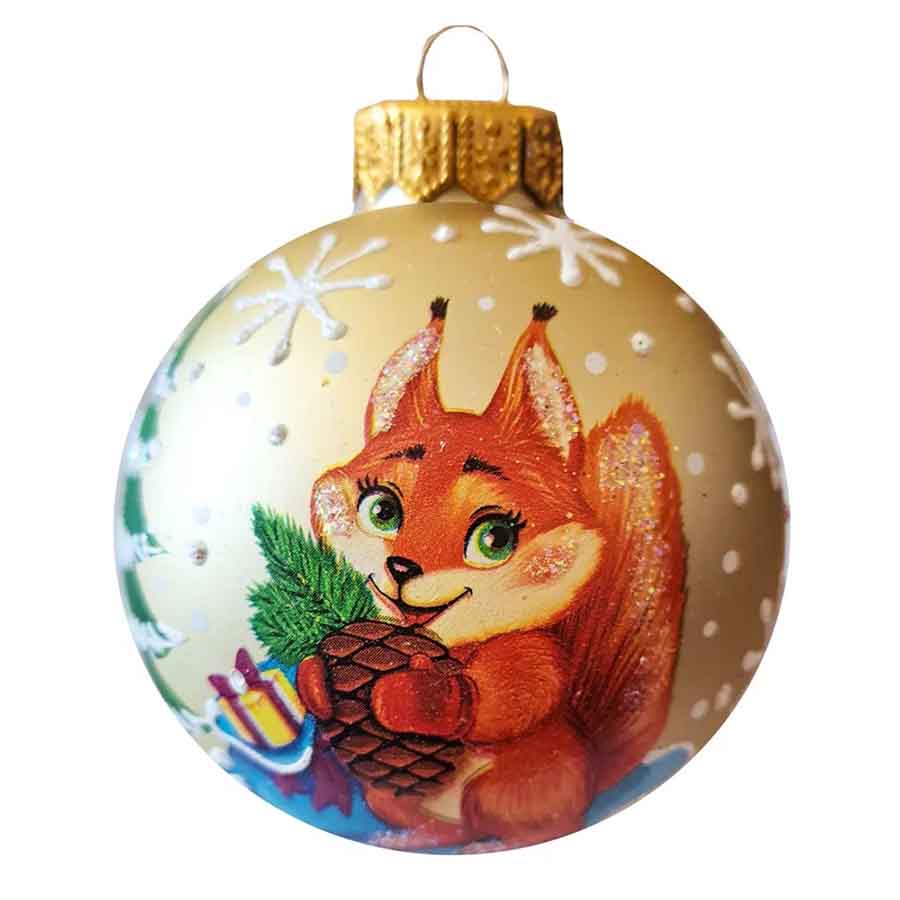 Украшение подвесное КОЛОМЕЕВ Шар Рыженькая белочка в подарочной упаковке 8см