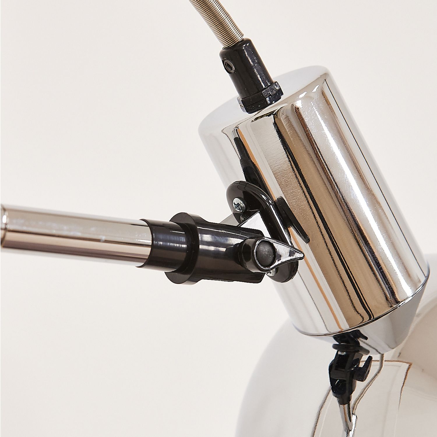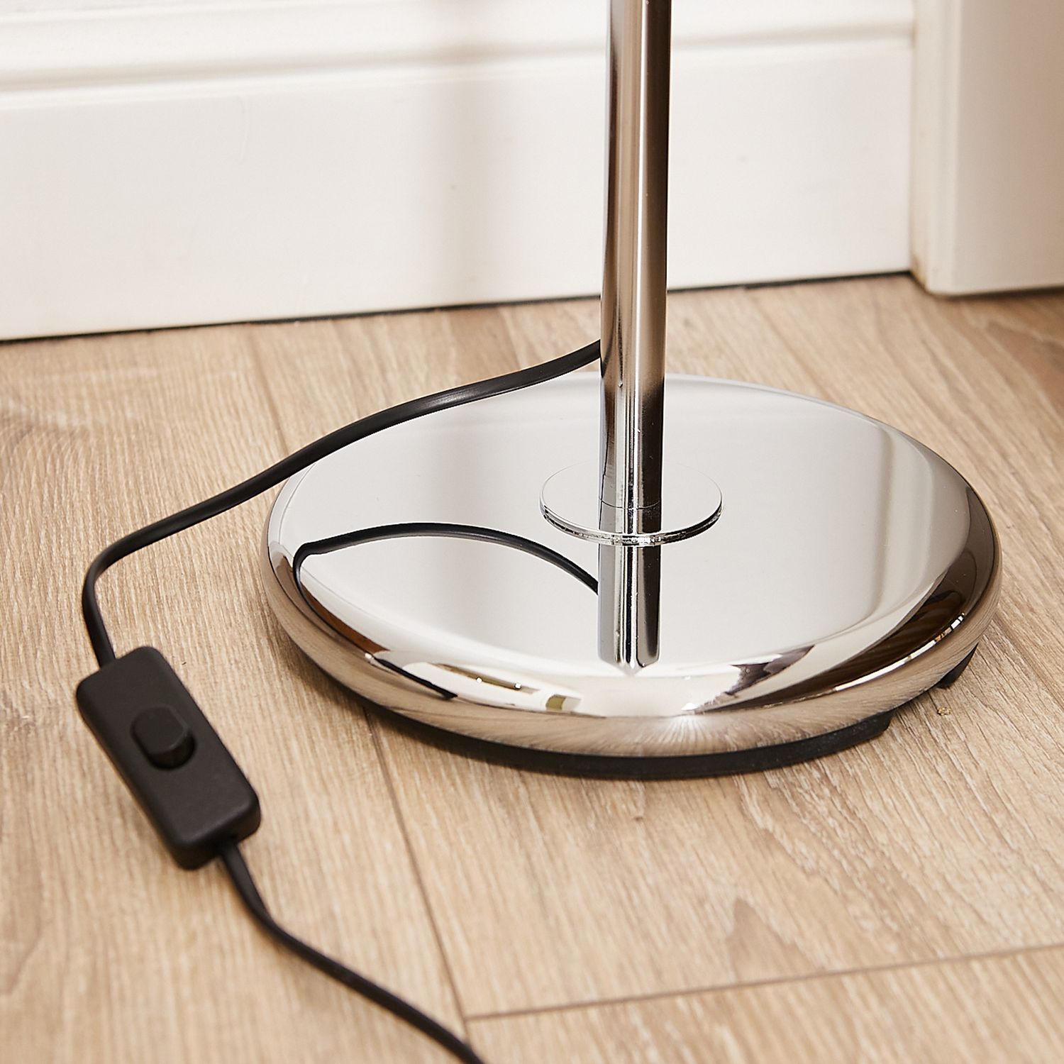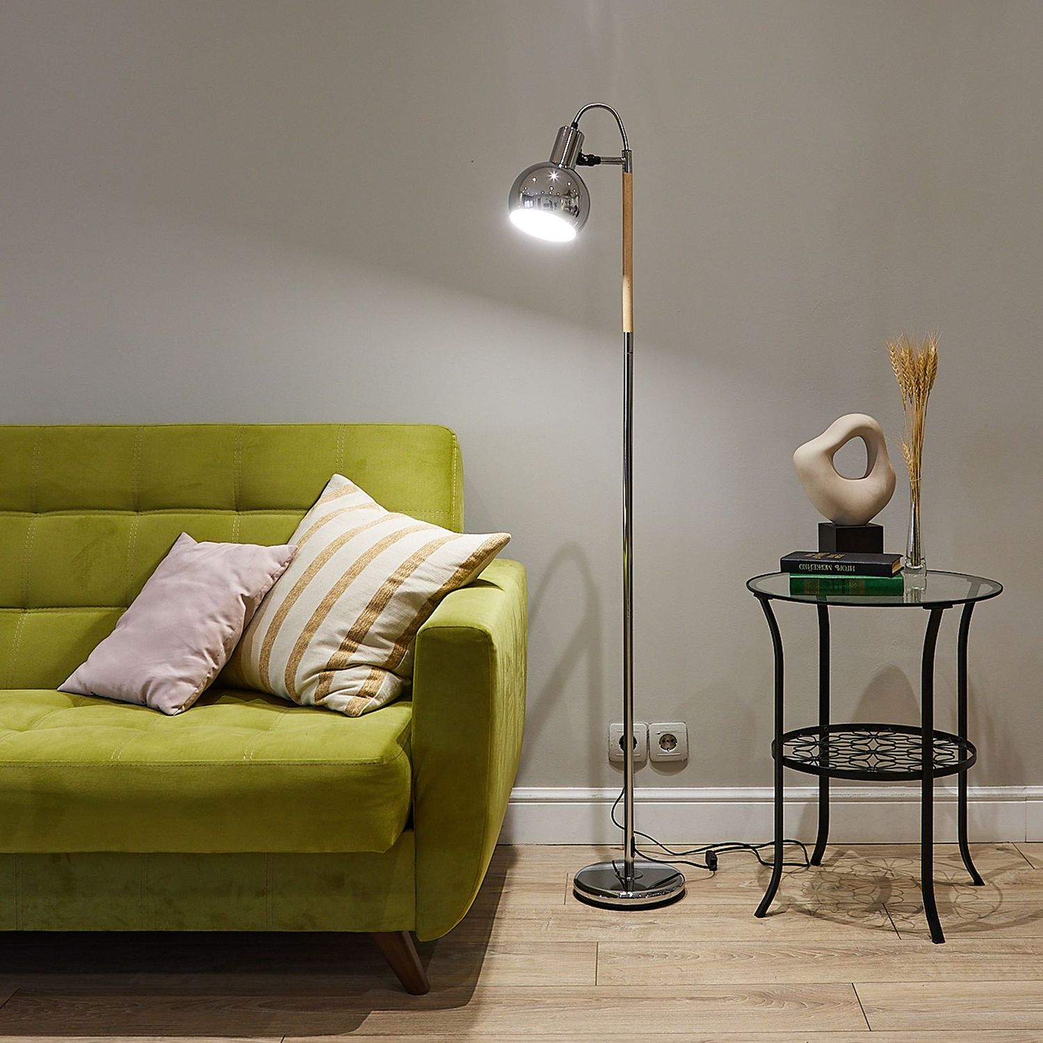 Торшер напольный, корпус выполнен из металла. Напольная лампа имеет современный стильный дизайн. Выключатель механический находится на проводе. Источником света служит лампочка с цоколем Е14 ( в комплект не входит, покупается отдельно), мощностью не более 60 Вт. Для наименьшего нагрева плафона напольного светильника рекомендуется использовать светодиодные лампы. Выбор цветовой температуры за Вами. Оптимальным размером будет лампа формой ШАР и диаметром до 45 мм. Длина кабеля питания 1,5 метра.