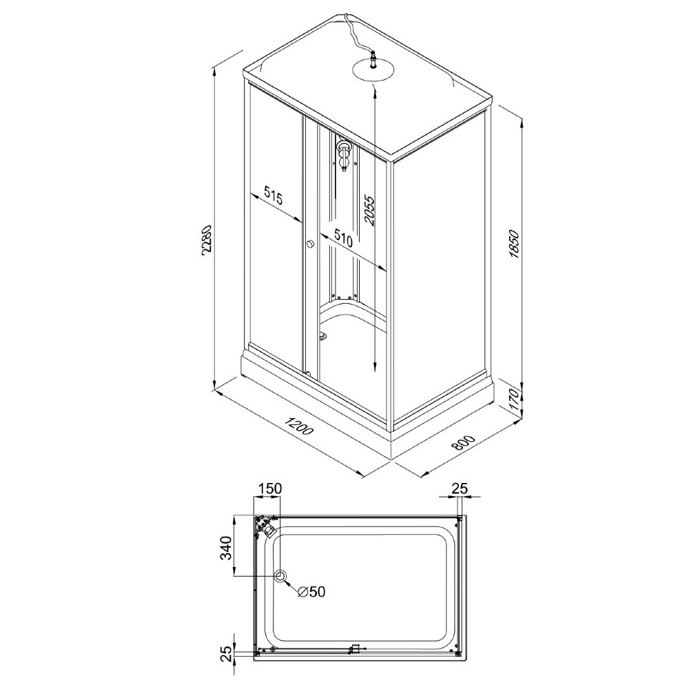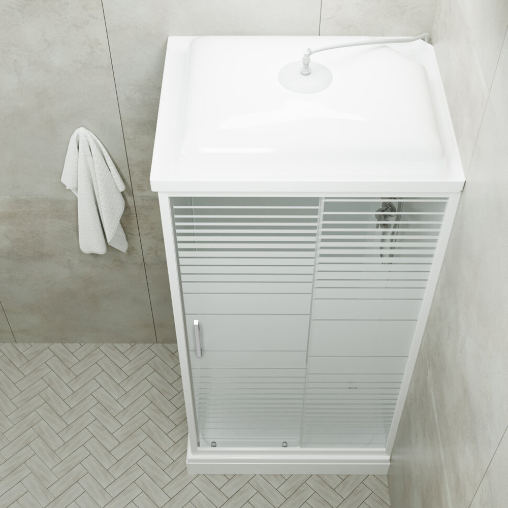 Комплектация: поддон + передние стекла + двери + задние стенки + крыша + комплект направляющих + душевой набор + сифон