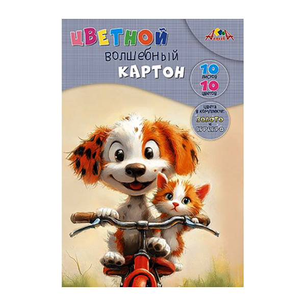 Цветной картон волшебный 10 листов, 10 цветов ТМ Апплика. В наборе 2 листа мелованного картона окрашенного золотой и серебряной металлизированной краской и 8 листов немелованного картона окрашенного в цвета: черный, белый, красный, зеленый, синий, фиолетовый, желтый, оранжевый. Цветной картон предназначен для создания детских поделок, аппликаций и декорирования. Картон легко режется ножницами, сгибается и клеится. Упаковка - папка выполнена из мелованного картона. Набор предназначен для детей от 3-х лет.