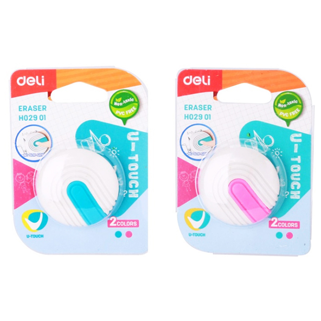 Ластик круглой формы из экологичного ПВХ с держателем. Предназначен для удаления надписей сделанных чернографитовыми карандашами. Отлично стирает, не царапая бумагу. Без запаха, белого цвета, в картонной упаковке. Размер: 45x45x10 мм.