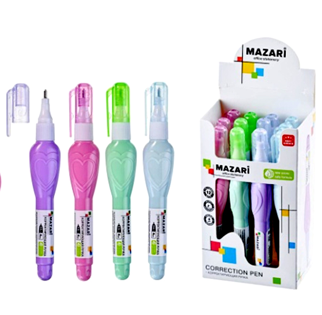 Корректирующая ручка является представителем целого семейства канцелярских принадлежностей. Предназначена для удаления (маскирования) ошибок и помарок в рукописном или печаnном тексте, позволяет легко осуществлять точечные и аккуратные исправления. Высококачественный металлический наконечник обеспечивает плавное движение и экономичный расход.