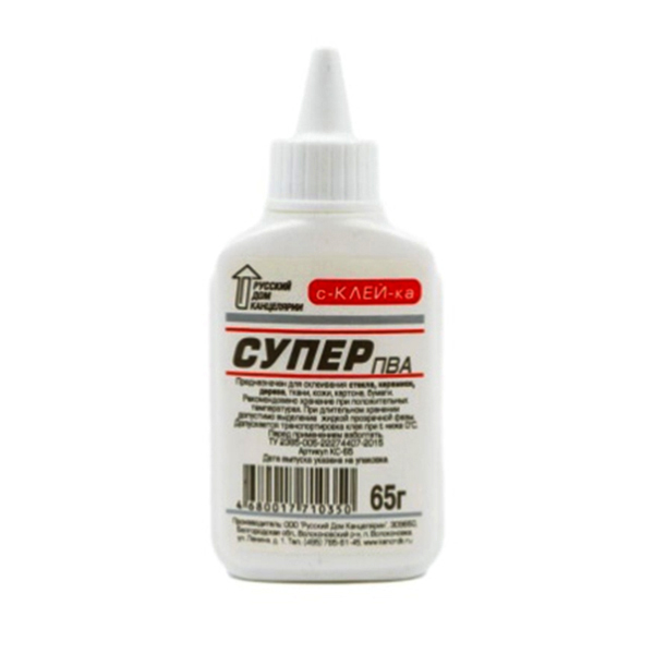 Клей ПВА «С-КЛЕЙ-КА» предназначен для склеивания бумаги, картона, дерева, ткани, кожи, фотобумаги. Отлично подходит для хобби и творчества для взрослых и детей.