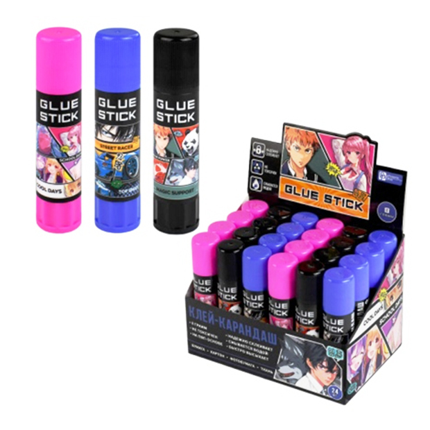Клей-карандаш АНИМЕ КОМИКС 8 грамм, PVP основа, белый, склеиваемые материалы: бумага, картон, текстиль, фотобумага. Клей - карандаш незаменим в офисной работе, на уроках труда и в домашнем использовании. Благодаря функциональному механизму расход клея минимален, поэтому даже небольшого тюбика хватит на длительное время.