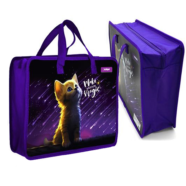 Вместительная папка с ручками, украшенная оригинальным изображением. Удобные ручки из широкой тесьмы, прочная молния, водоотталкивающий материал. Имеет одно большое отделение с расширением из ткани до 7см. Высота ручек 10см.