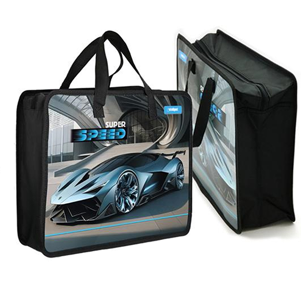 Вместительная папка с ручками, украшенная оригинальным изображением. Удобные ручки из широкой тесьмы, прочная молния, водоотталкивающий материал. Имеет одно большое отделение с расширением из ткани до 7см. Высота ручек 10см.