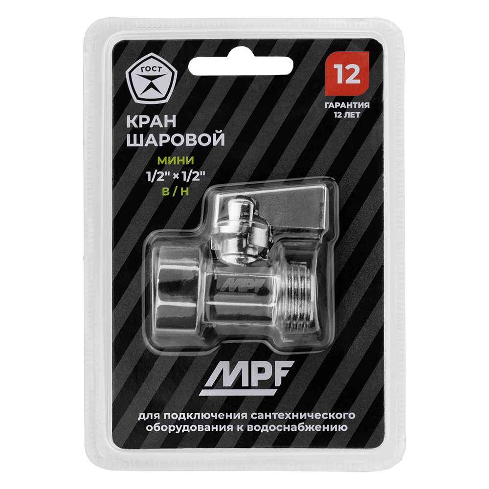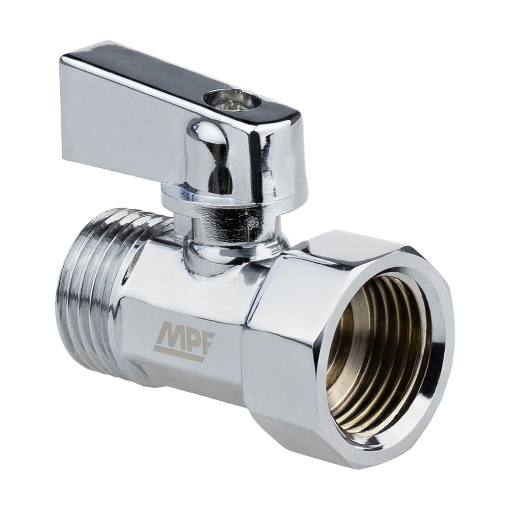 Кран шаровой мини для бытовой техники, предназначенный для подключения гибкой подводки, стационарных и сантехнических приборов (смесители, сливные бачки, душевые лейки, биде, стиральные машины, посудомоечные машины, водонагреватели, системы очистки воды и т.п.) в систему трубопровода, с целью перекрытия потока рабочей среды при их обслуживании, ремонте или предотвращения аварийной ситуации, сохраняя при этом водоснабжение в помещениях на остальных участках водопровода.