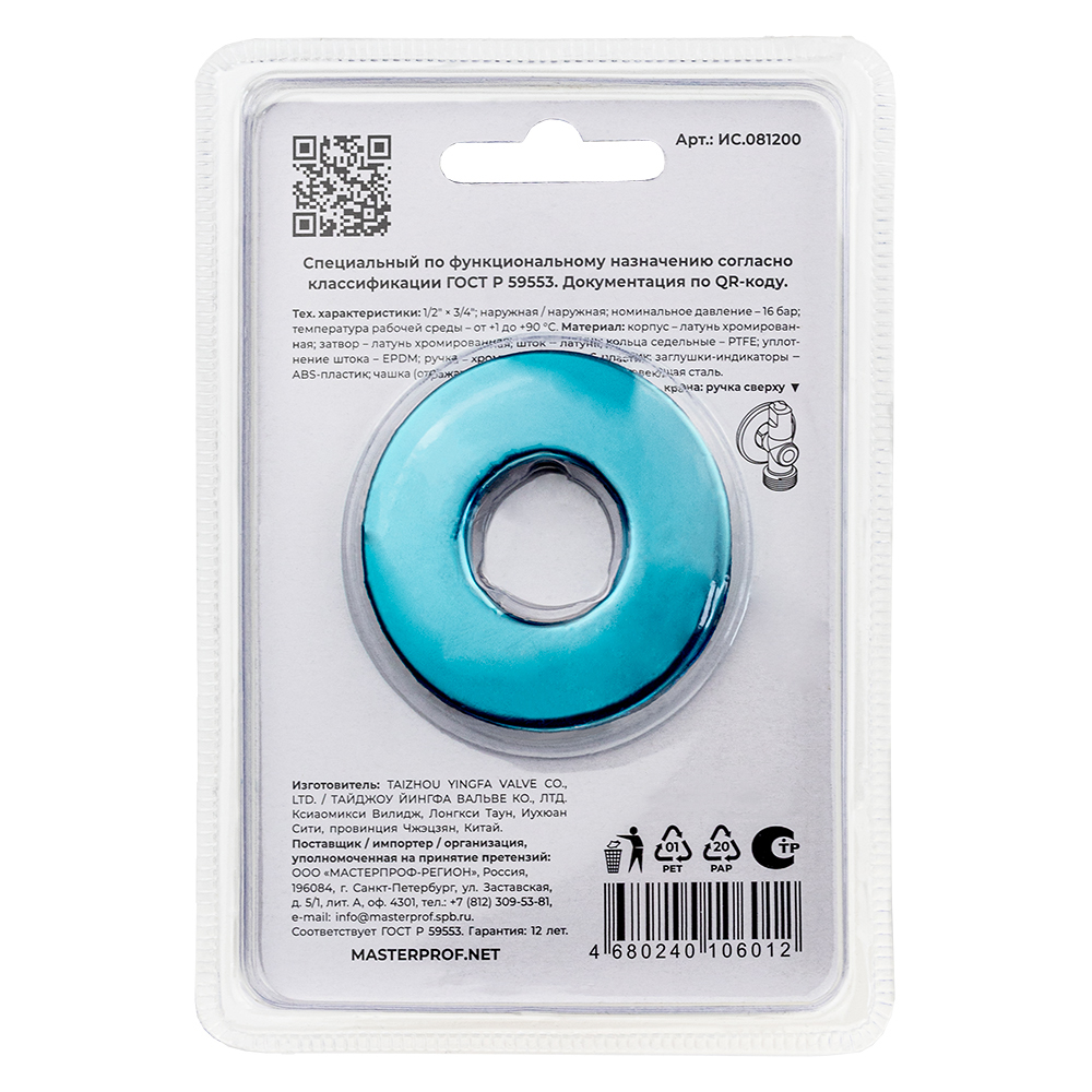 Кран шаровый MASTERPROF Угловой НР-НР 1/2"х3/4" ИС.081200