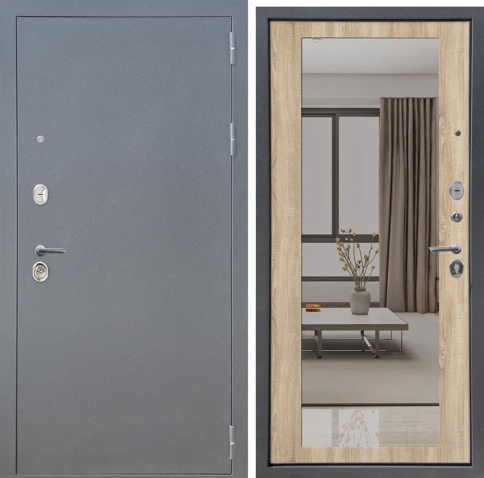 Дверь стальная FLYDOORS Аркан R 2050х860мм букле графит/дуб сонома светлый