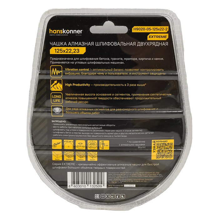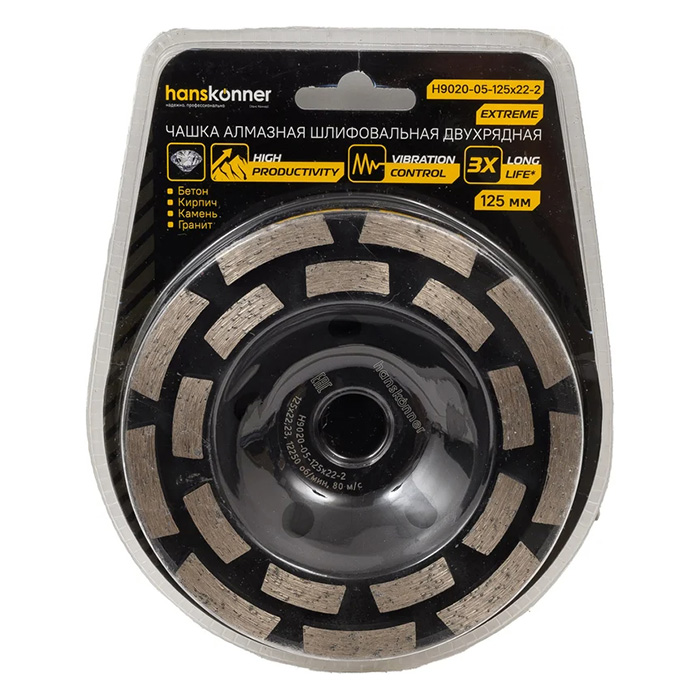 Чашка шлифовальная HANSKONNER Двухрядная 125мм