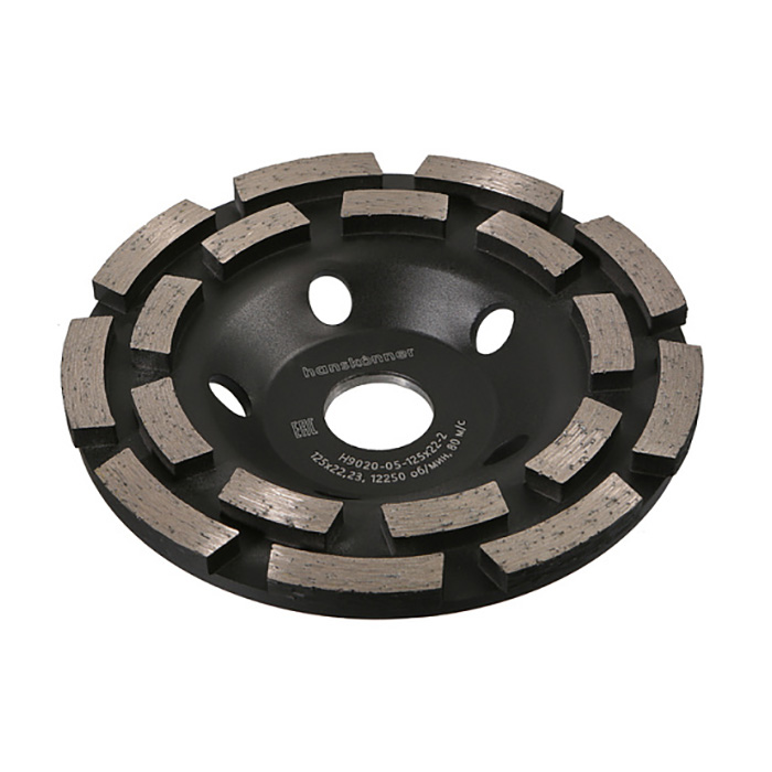 Предназначена для выравнивания бетонных поверхностей, шлифовки бетона, кирпича, камня, снятия краски. 2-х рядное расположение сегментов позволяет производить работы без охлаждения, благодаря улучшенной вентиляции рабочей части чашки.