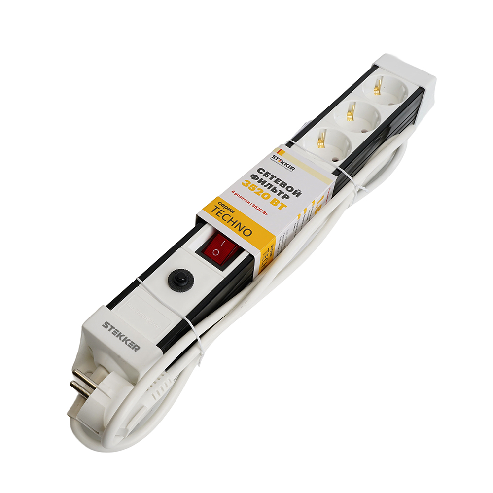 Фильтр сетевой STEKKER Techno 4 гнезда 5м белый