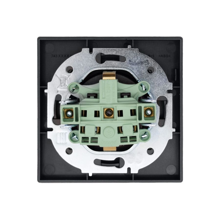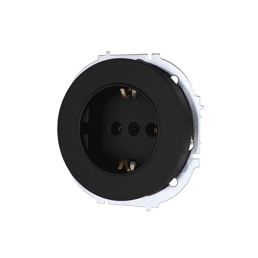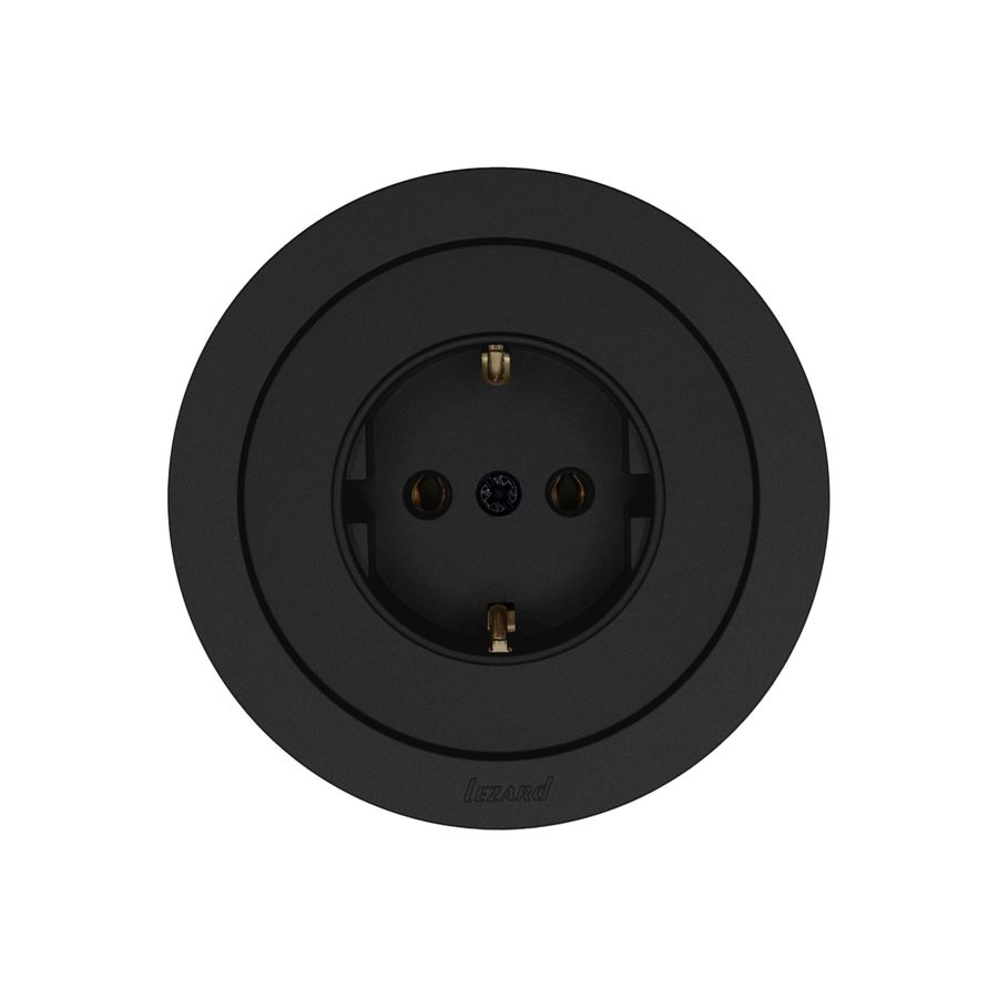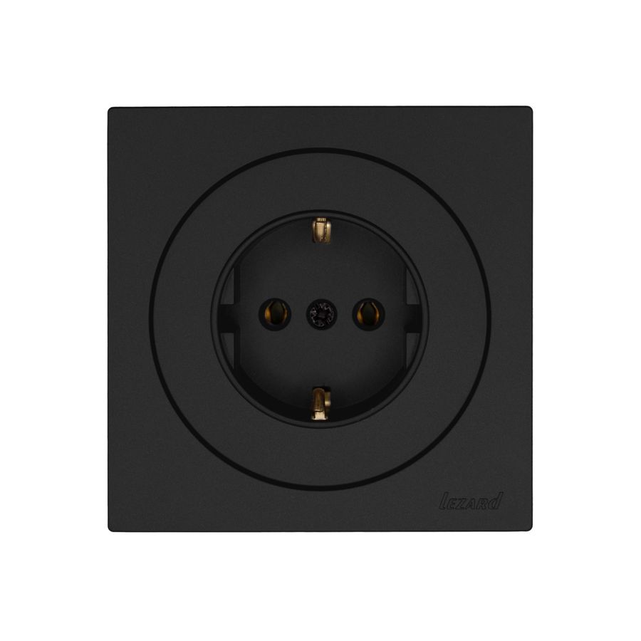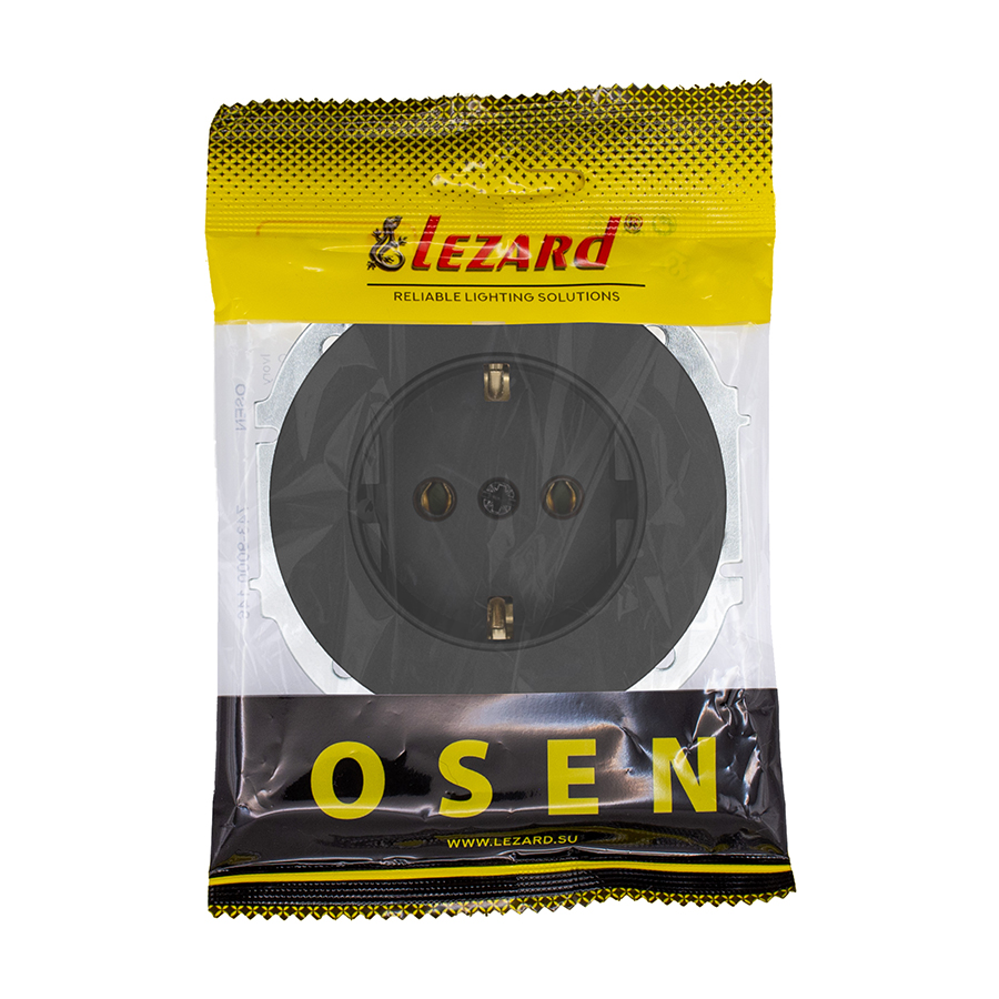 Розетка 1-местная СП OSEN с заземлением ПБТ чёрный бархат LEZARD 743-4288-122В - стильное сочетание современного дизайна и функциональности. Особенность серии — возможность выбора формы рамки: классическая квадратная или эстетичная круглая, что позволяет гармонично вписать изделие в любой интерьер. Огнеупорный пластик (устойчив к температуре 850 °C). Защита пальцев (во время монтажа нет возможности касания к каким-либо токопроводникам).