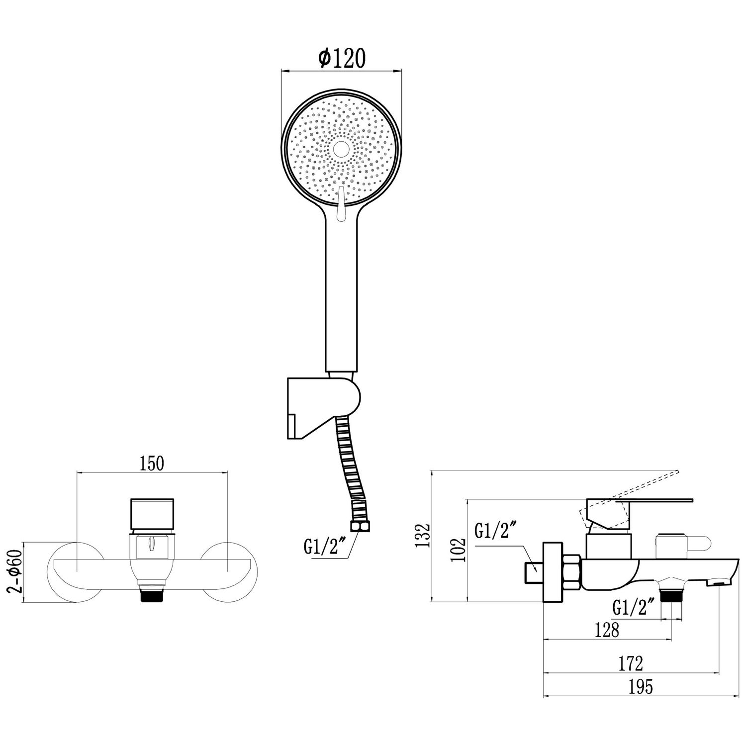 Смеситель для душа BRAVAT Rhein F9429564BW-01-ENG