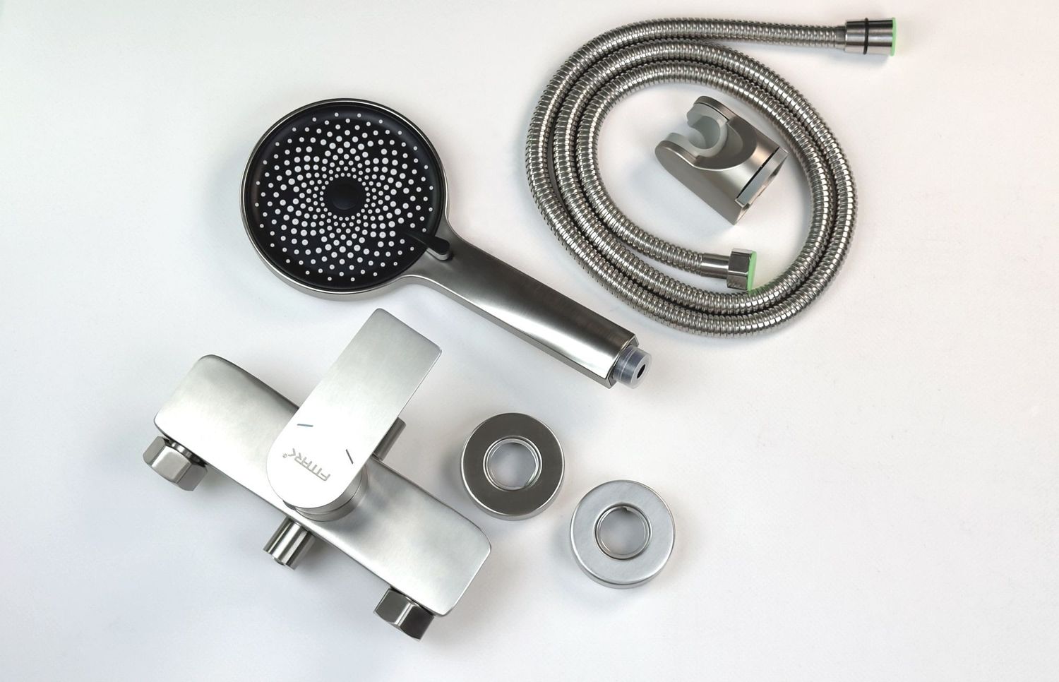 Модель выполнена из нержавеющей стали SUS 304 — прочного, устойчивого к коррозии материала, который гарантирует долгий срок службы даже при ежедневной эксплуатации. Всё необходимое находиться уже в комплекте — от шланга до креплений.