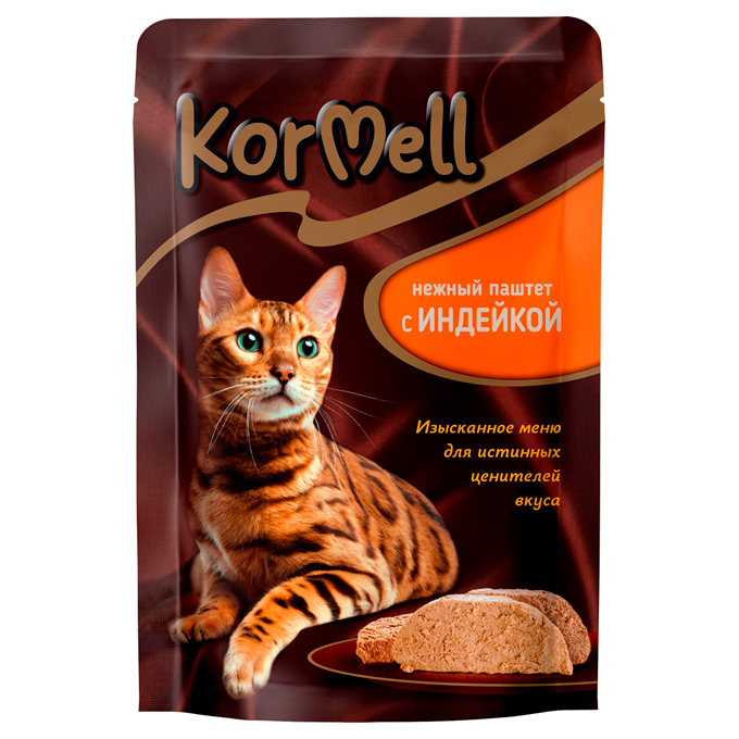 KorMell — паштетная линейка для любимых кошек: нежная, легкая, аппетитная и ароматная. Паштет содержит большое количество влаги, что помогает поддерживать водный баланс в организме животного и предотвращать проблемы с мочевыделительной системой. Это особенно важно для пушистиков, которые пьют недостаточно воды.