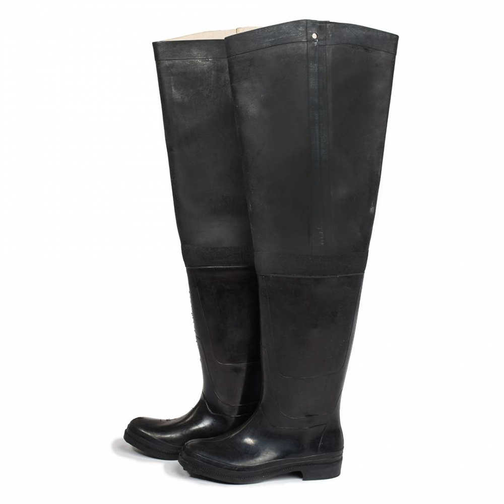 Верх сапог выполнен из гладкой черной нелакированной резины, внутренняя текстильная подкладка – из трикотажной хлопчатобумажной трубки ластичного переплетения. Ходовые поверхности подошвы и каблука имеют рифленый рисунок с высотой рифов 3,5 мм. для более прочного сцепления с грунтом.