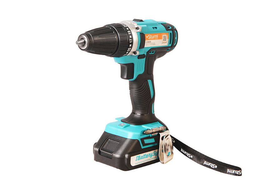 Sturm CD3618 – аккумуляторный 18 вольтовый двухскоростной шуруповерт бытового назначения. Модель является частью линейки 1Battery System, обеспечивающей совместимость одного и того же аккумулятора с целым рядом инструмента. Шуруповерт Sturm CD3618 представляет оптимальное сочетание мощности, компактности и широкого функционала. Оснащен производительным 18В электромотором и надежным планетарным механизмом, позволяющим эффективно использовать инструмент как для работ с крепежом любого размера, так и для сверления в материалах с разной плотностью. Редуктор имеет две скорости: режим пониженных оборотов (0 – 400 об / мин) предназначен для работ с крепежом, режим повышенных оборотов (0 – 1500 об / мин) – для сверления отверстий. Благодаря муфте регулировки усилия c 21 ступенью, значение момента затяжки на валу шпинделя можно изменять в широком диапазоне – это дает возможность максимально гибко настраивать инструмент применимо к типам используемых крепежных элементов и их размеру, а также учитывая материал заготовки. Небольшая толщина корпуса и рукояти, а также применение конусного патрона позволяют эффективно использовать модель в условиях с трудным доступом. Нейтральный центр тяжести и обилие прорезиненных противоскользящих поверхностей способствуют надежному хвату и лучшему контролю шуруповерта в процессе работы, а дополнительные резиновые накладки на боковинах корпуса самортизируют удар при случайном падении и удержат инструмент на наклонной поверхности, предотвращая его соскальзывание. К особенностям модели Sturm CD3618 стоит отнести функцию блокировки вала шпинделя, электронный тормоз выбега двигателя, гарантирующий мгновенную остановку патрона, а также LED подсветку рабочей зоны, существенно облегчающей работу при недостаточном освещении. Предусмотрена специальная зацепная скоба, для крепления на пояс, а также страховочный ремешок для руки. Шуруповерт комплектуется парой литий-ионных (Li-ion) аккумуляторов, емкостью 2 А ч, импульсным зарядным устройством, а также пластиковым кейсом для удобства хранения и транспортировки.