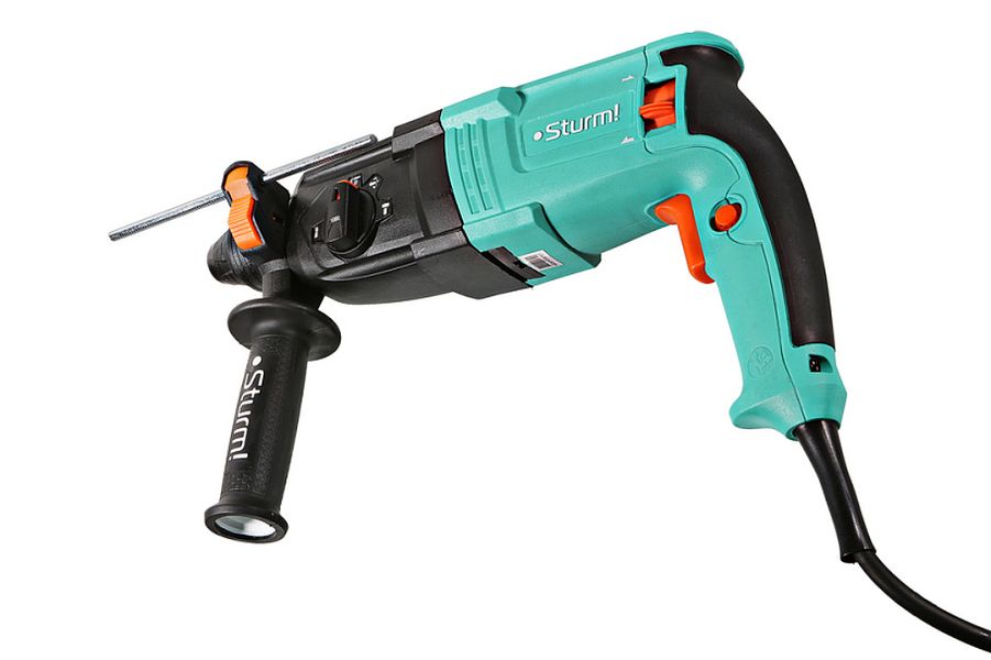 Sturm RH2526BR – универсальный трехрежимный перфоратор c патроном под оснастку SDS Plus. Имеет классическую горизонтальную компоновку с продолговатым узким корпусом и небольшую массу, за счет чего максимально удобен при высотных работах, а также при эксплуатации в условиях с ограниченным доступом. Корпус инструмента выполнен из высококачественного пластика с применением нейлона и демонстрирует хорошую стойкость к ударам и воздействию низких температур Модель оснащена электродвигателем мощностью 920 Вт и усиленным вакуумно-компрессионным механизмом, развивающим энергию удара – 3.0 Дж – это дает возможность уверенно бурить отверстия диаметром до 26 мм в материалах различной твердости, включая кирпичную кладку, камень и бетон. Наличие функции реверса с подпружиненным механизмом поворота щеточного узла позволяет сохранять одинаковую мощность при любом направлении вращения и исключить случайные переключения во время использования Перфоратор Sturm RH2526BR является трехрежимным – в зависимости от конкретной задачи пользователь выбирает нужный: сверление, сверление с ударом, либо режим удара. Также, предусмотрен отдельный режим, дающий возможность установки долота в любом угловом положении. Для безопасности пользователя в перфораторе установлена предохранительная кулачковая муфта SafetyClutch, гарантирующая защиту от обратного удара в случае заклинивания оснастки. Сетевой кабель 4VelcroRubber имеет резиновую изоляцию, что сохраняет его гибкость и эластичность в условиях низких температур, а четырехметровая длина кабеля дает возможность использовать инструмент без применения дополнительного сетевого удлинителя, обеспечивая рабочую зону площадью до 50 м2. Инструмент штатно комплектуется вместительным пластиковым кейсом для удобства хранения и транспортировки.