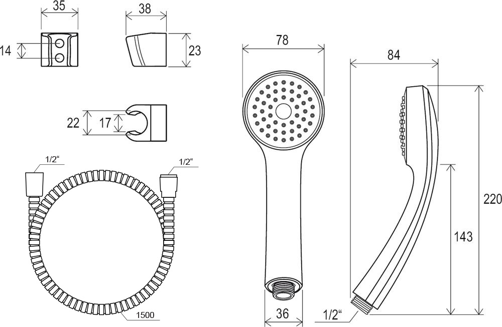 Комплект состоит из лейки шланга и кронштейна. Обладает стильным дизайном благодаря хромированному покрытию и плавным линиям деталей. Устойчива к коррозии и крайне просто монтируется к поверхности стены.