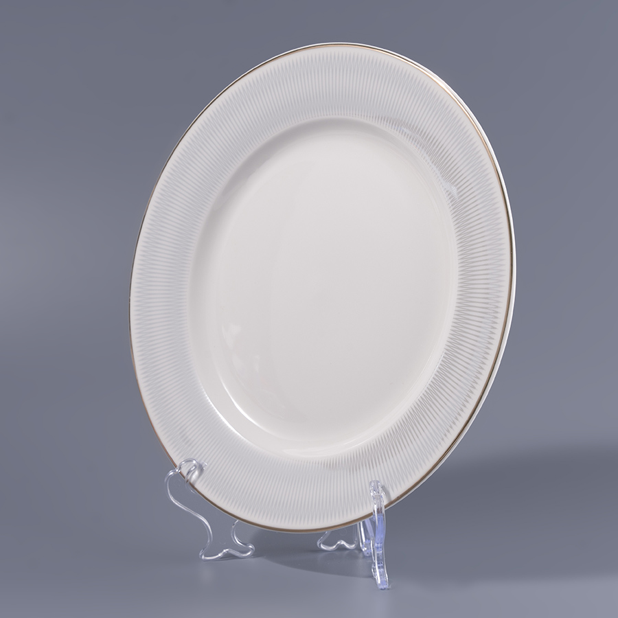 Керамическая плоская тарелка обладает элегантным дизайном с золотистой окантовкой и декоративными элементами. Она идеально подходит для сервировки как повседневных, так и праздничных блюд. Керамика обеспечивает долговечность и устойчивость к высоким температурам, что делает эту тарелку практичным выбором для использования.