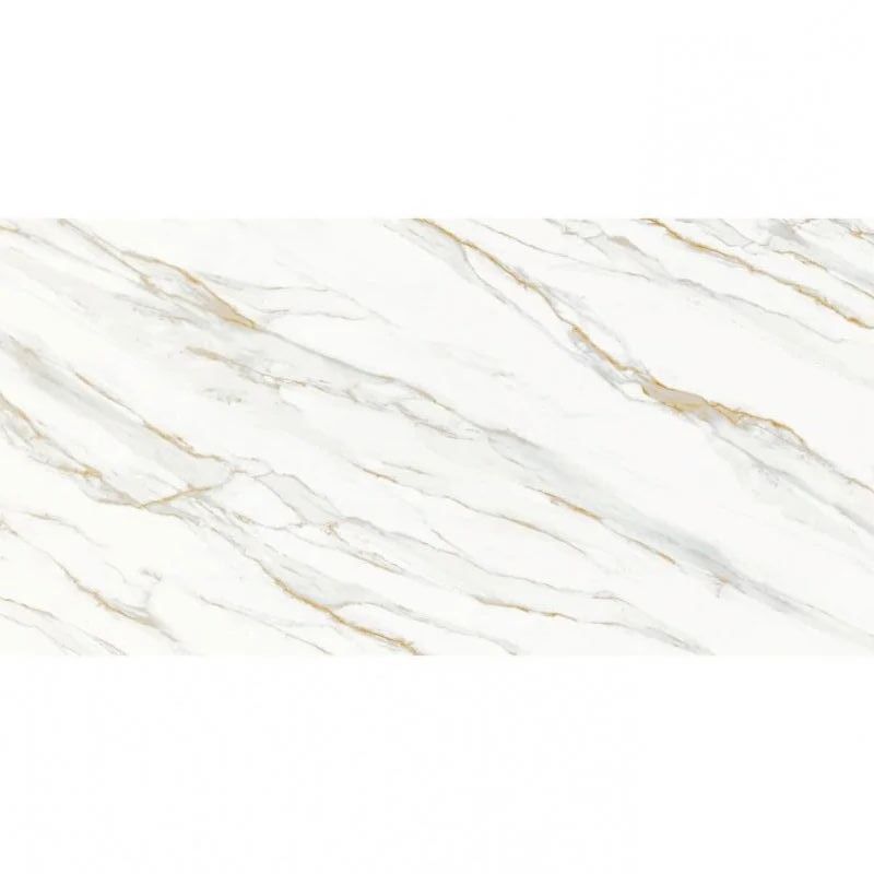 Керамический слэб STAROSLAB Calacatta Gold 160х320 см — это синоним роскоши и изысканности в мире керамогранита. Вдохновленный одноименным итальянским мрамором, он сочетает в себе белоснежную основу с эффектными золотистыми прожилками, создающими динамичный и благородный рисунок.