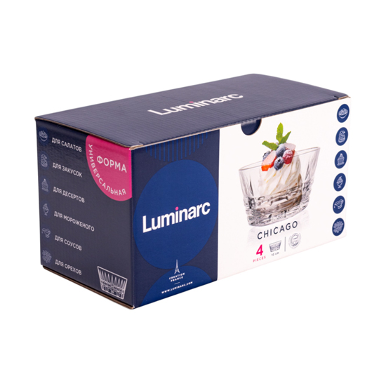 Набор салатников ЧИКАГО состоит из четырех салатников. Салатники выполнены из высококачественного стекла, имеют универсальную форму. Такие салатники отлично подойдут для сервировки закусок, нарезок, салатов, орехов, соусов, мороженого. Набор салатников в подарочной упаковке станут отличным подарком к любому празднику. На упаковке информация об универсальности использования салатника. Коллекция Чикаго – оригинальное воплощение стиля ар-деко. Сочетая в себе элегантный дизайн и функциональность она идеально подходит как для ежедневного использования, так и для праздничной сервировки.