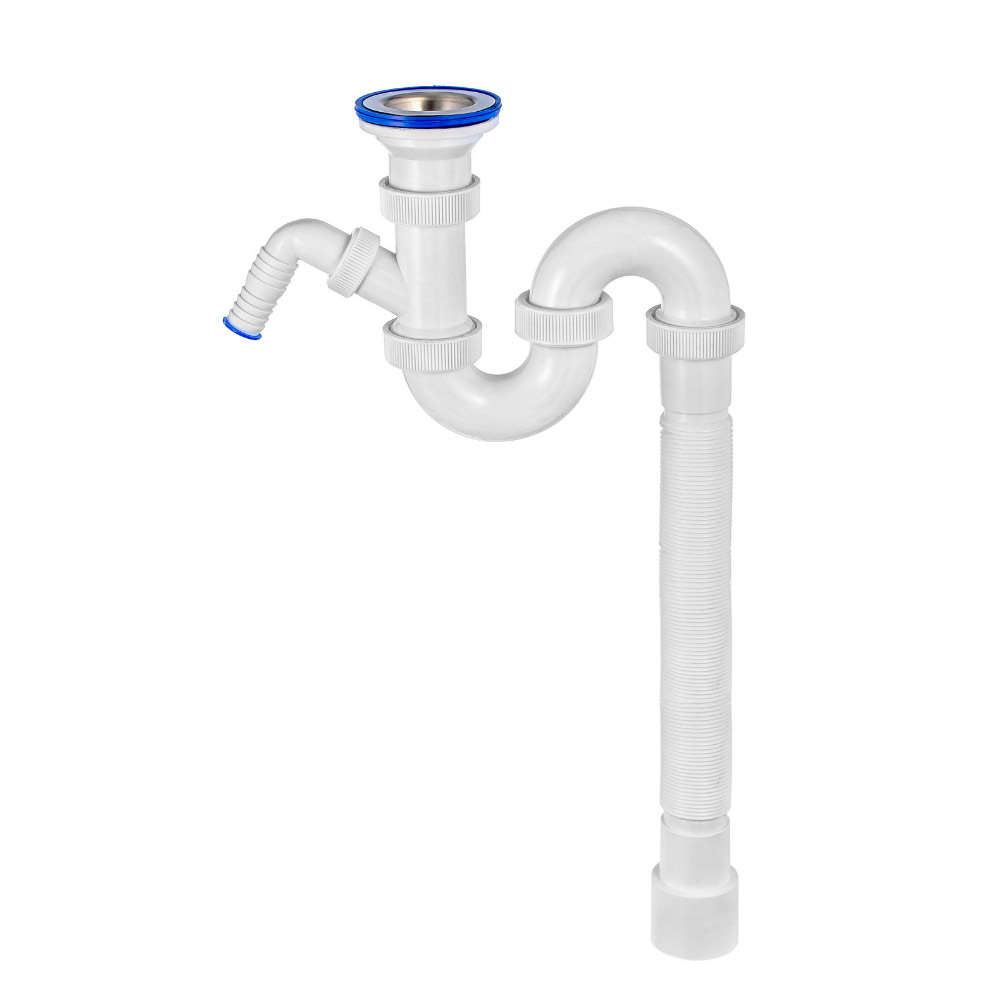 Сифон WIRQUIN Трубный 30980698 - прямоточный сифон с нержавеющей чашкой, с отводом для посудомоечной или стиральной машины, с вертикальным выпуском и с гибкой трубой. Это высокая пропускная способность, обеспечивающая всей конструкцией эффект самоочищения. Наличие огромного количества выпусков позволяет использовать его во всех сериях моек.