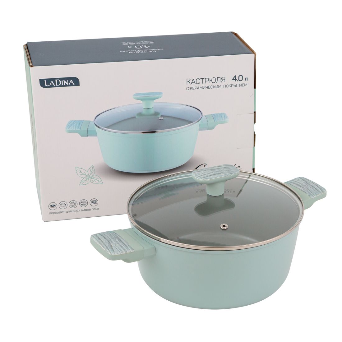 Кастрюля Ladina объемом 4 л с керамическим антипригарным покрытием. Кастрюля изготовлена из литого алюминия, устойчивого к коррозии. Ее отличают высокая устойчивость к высоким температурам, равномерное распределение тепла и безопасность эксплуатации благодаря отсутствию выделения токсичных веществ.