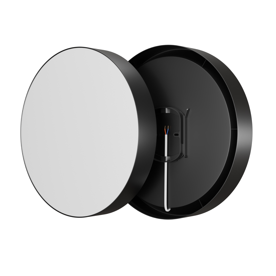 Изделие излучает световой поток в 2160 лм, потребляя при этом 24 Вт, что в итоге дает энергоэффективность 90 лм/Вт. Цветовая температура 4000 К наиболее близка к естественному солнечному свету. Размер светильника ø230х35 мм, ширина рамки всего 2 мм. Корпус выполнен из ABS-пластика, рассеиватель из полистирола. Цвет корпуса и рамки черный.
