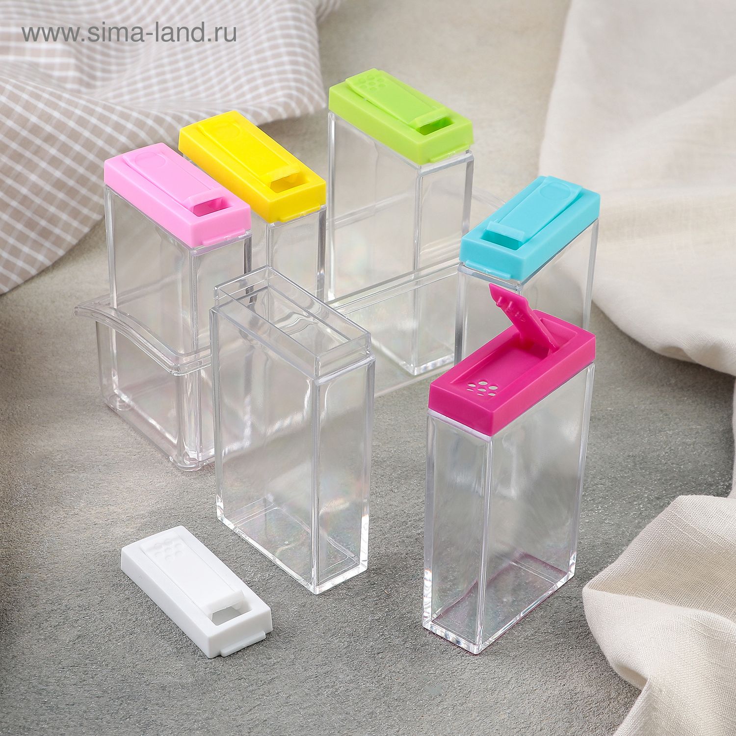 Материал изготовления емкостей – пластик и керамика, что гарантирует их долговечность и устойчивость к влаге. Плотное закрытие емкостей помогает сохранить свежесть и аромат специй, а также предотвращает проникновение влаги.