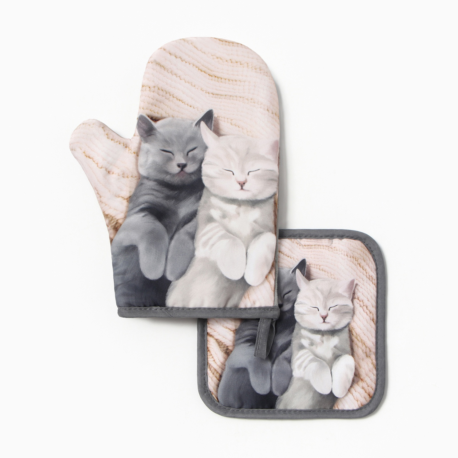 Набор для кухни ДОЛЯНА Котики рукавица + прихватка