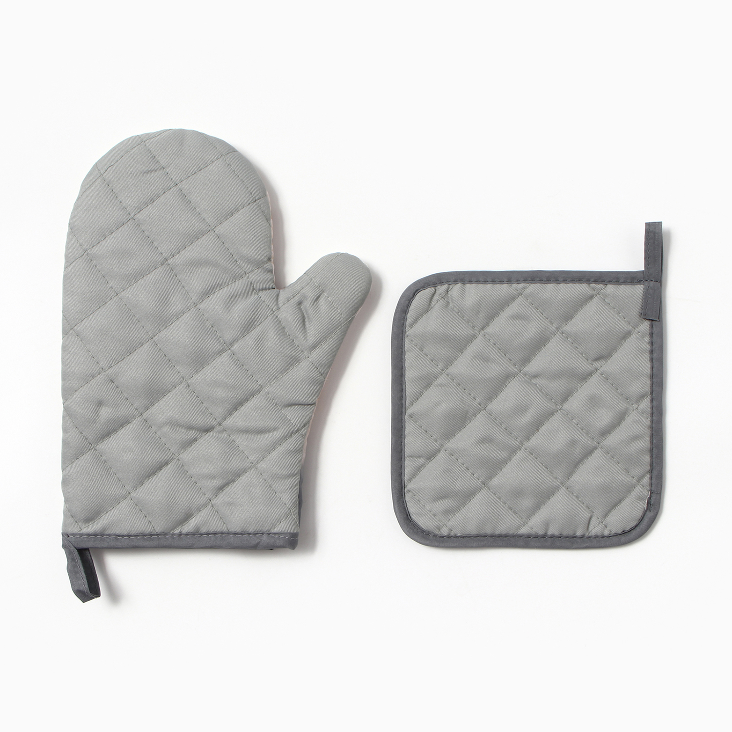 Этот очаровательный кухонный комплект подарит вашей кухне особую атмосферу домашнего уюта и радости. Рукавичка и прихватка, выполненные из качественного ткани габардин с добавлением полиэстера, обеспечат комфорт и безопасность при работе с горячими предметами.