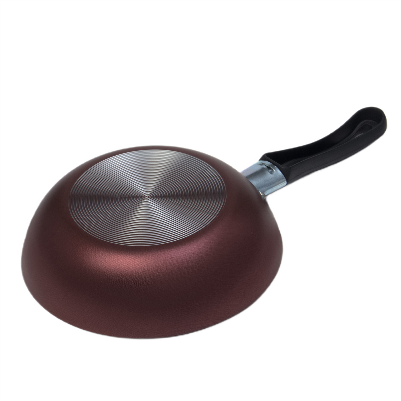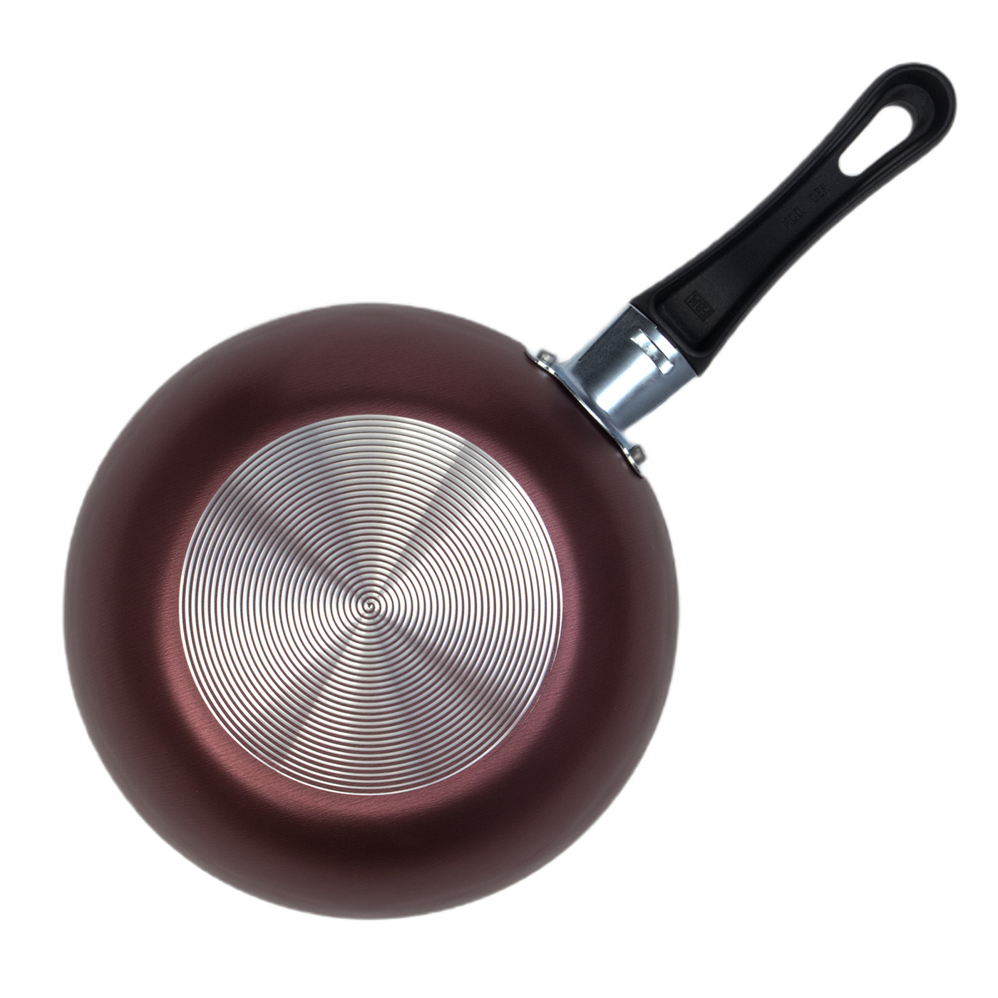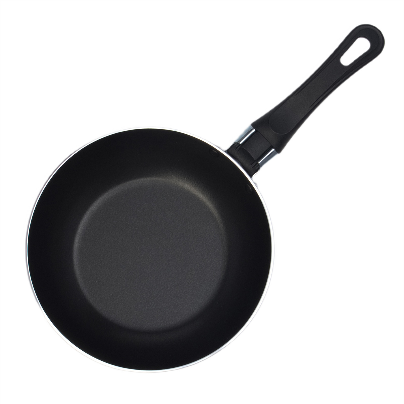 Удобная модель для разогревания одной порции или приготовления небольшого количества продуктов. Сковорода легкая, так как ее корпус сделан из алюминия, а ручка из пластика. Внешнее покрытие защищает сковороду от нагара и облегчает уход. Перед первым использованием рекомендуется вымыть сковороду в теплой мыльной воде и высушить кухонной салфеткой. В избежании термошока не ставьте горячую сковороду под холодную воду.