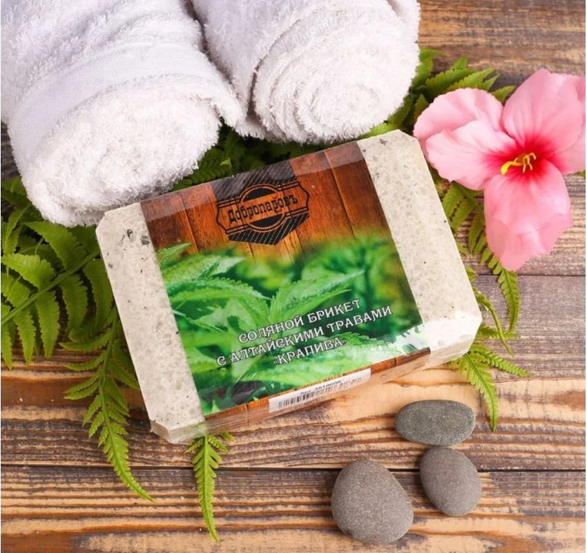 Соляной брикет с алтайскими травами Добропаровъ Крапива 1.35 кг 3519608 пригодится в бане и сауне. Сделан с применением натуральных полезных трав.