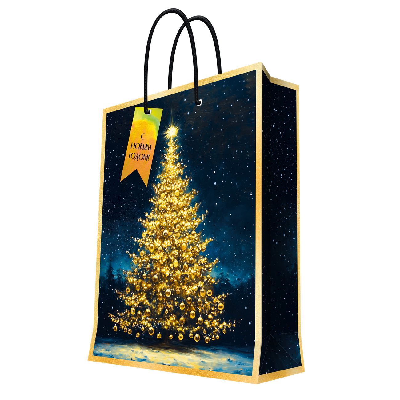 Выполнен из качественной бумаги, дно усилено дополнительной подложкой. Ручки из крепкого шнура.