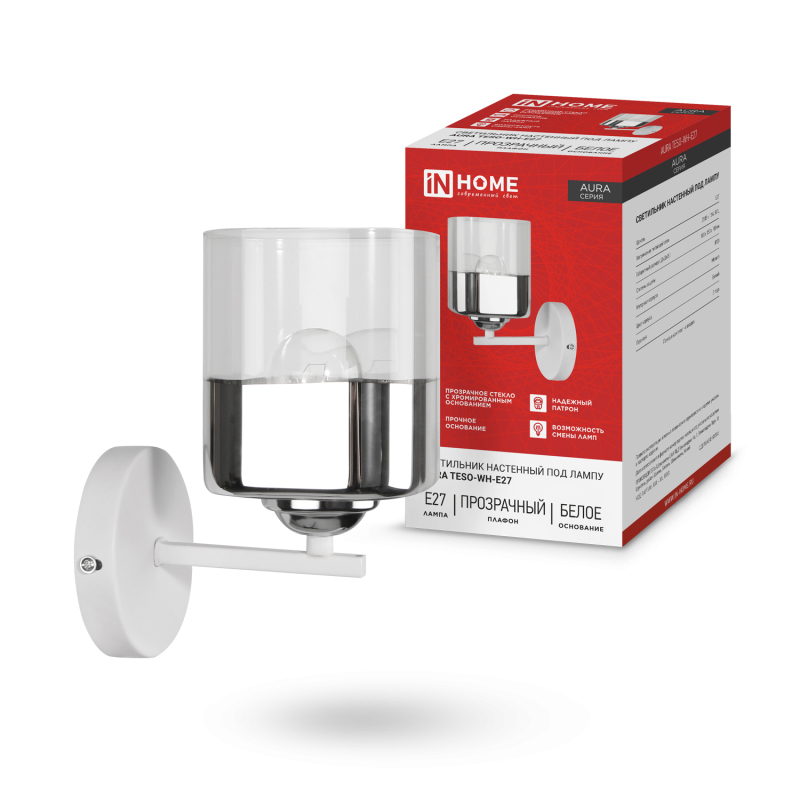 Светильники серии AURA TESO под лампу Е27 с квадратными плафонами оригинальной формы, где комбинация прозрачного стекла и блестящего хрома создает эффектное сочетание современности и изыска, идеально впишутся в любое пространство. Надёжный патрон обеспечивает плотный контакт с цоколем лампы, что исключает возможность окисления. Благодаря сменным лампам вы можете подбирать цветовую температуру и яркость в вашем помещении.