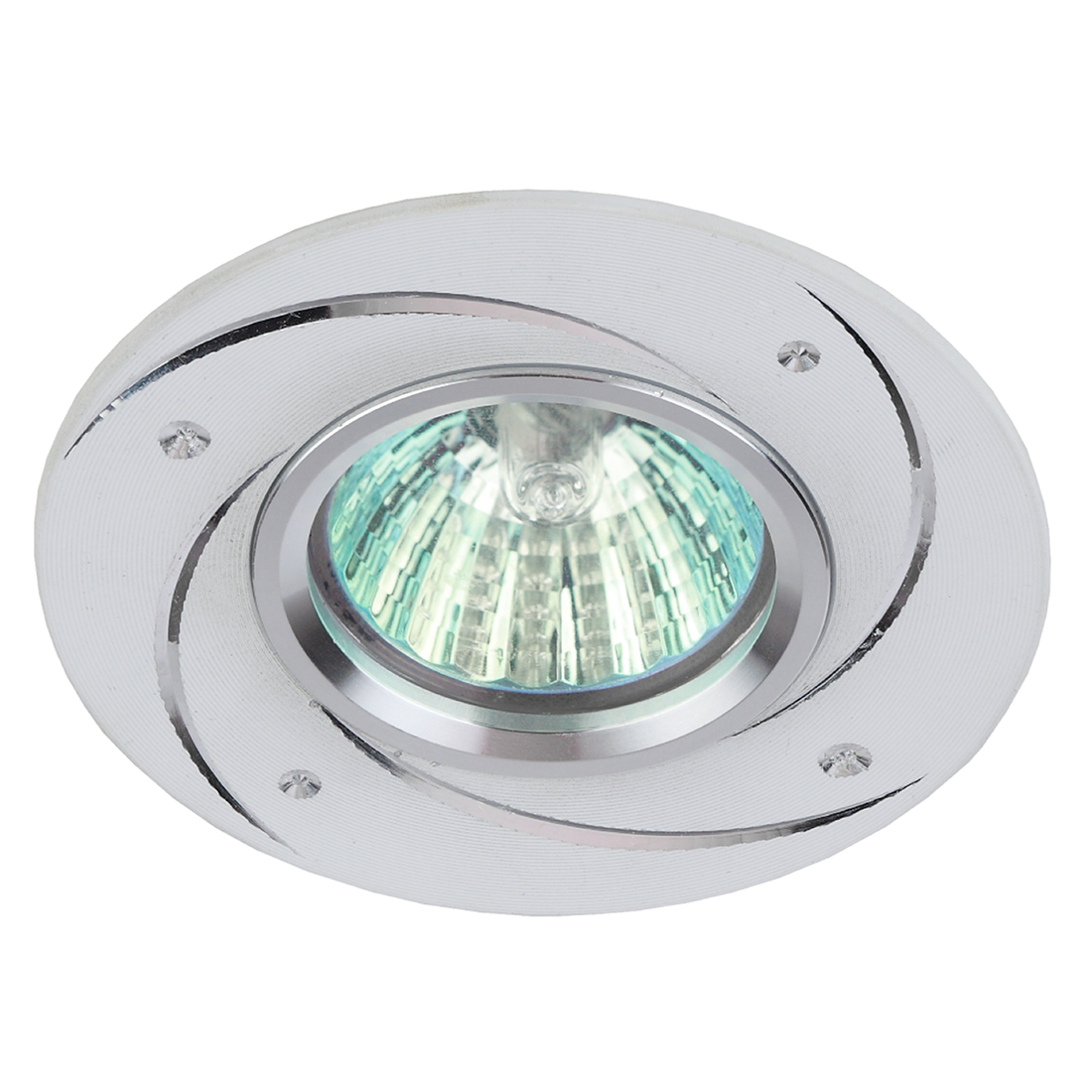 При помощи точечных светильников можно освещать только те участки помещения, которыми вы пользуетесь в данный момент, не затрачивая лишнюю электроэнергию. Максимальная мощность лампы составляет 50 Вт. Корпус встраиваемого светильника изготовлен из металла, что делает его особенно удобным и надежным в использовании. Диаметр отверстия, требуемого для установки светильника составляет 60 миллиметров, а диаметр самого светильника – 95 миллиметров. Цоколь под лампу GU5.3 входит в комплект.