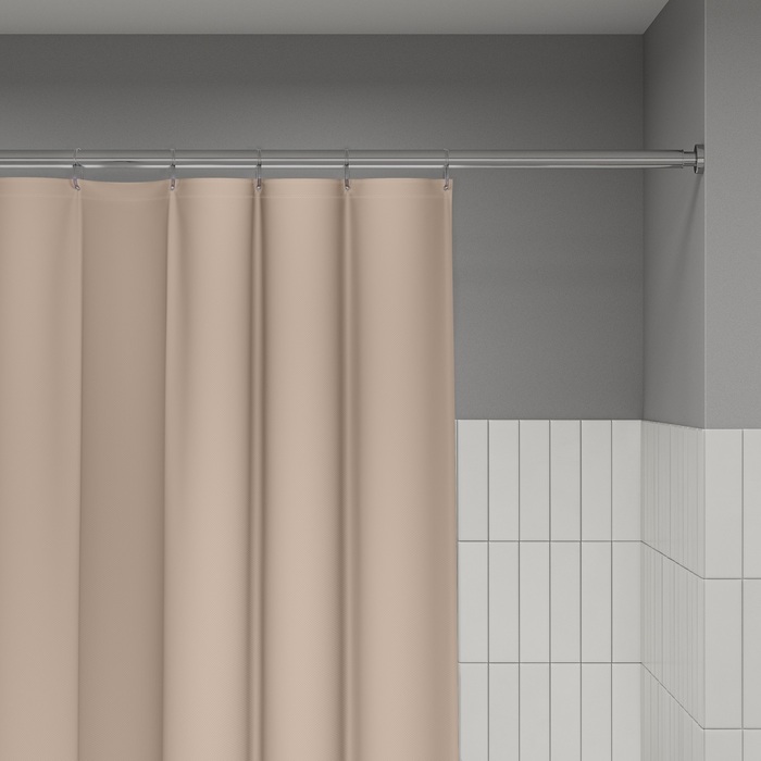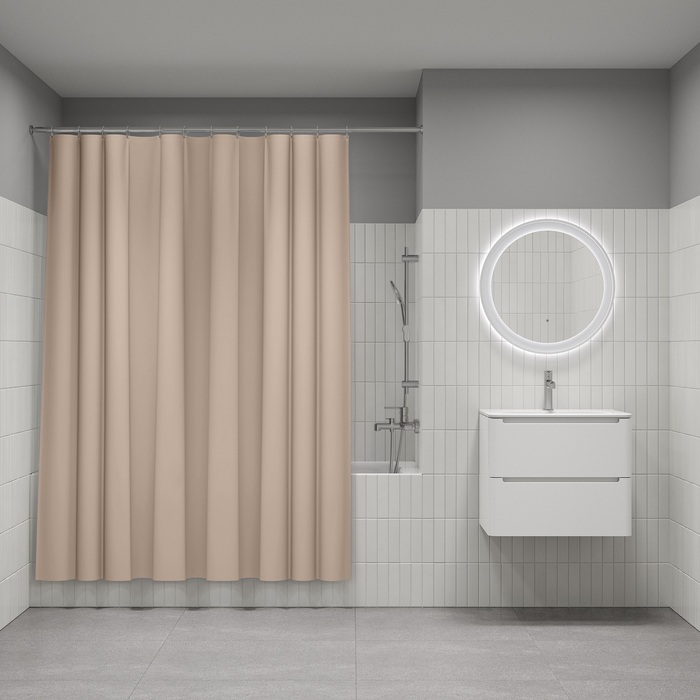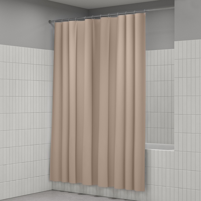 Однотонная непрозрачная штора для ванной цвета кофе с молоком. Изготовлена из современного материала PE – мягкого, прочного, приятного на ощупь, экологичного и безвредного для здоровья термопластика. Без неприятного запаха, благодаря чему шторку для ванной можно использовать уже в день покупки.