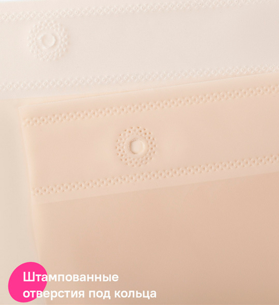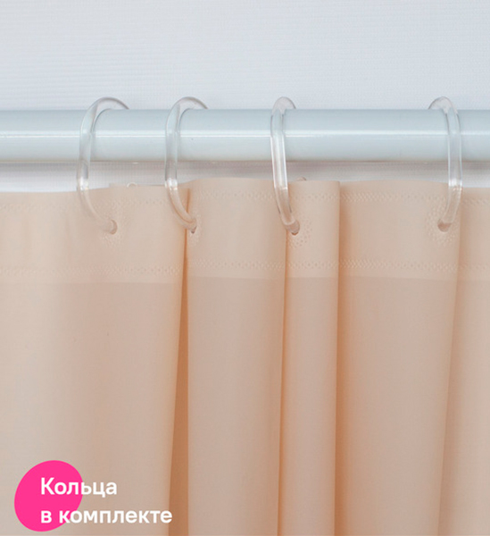 12 прозрачных пластиковых колец в комплекте, штора готова к использованию. По верхнему краю 12 штампованных отверстий – кольцо/крючок легко пройдет насквозь, не повредив шторы.